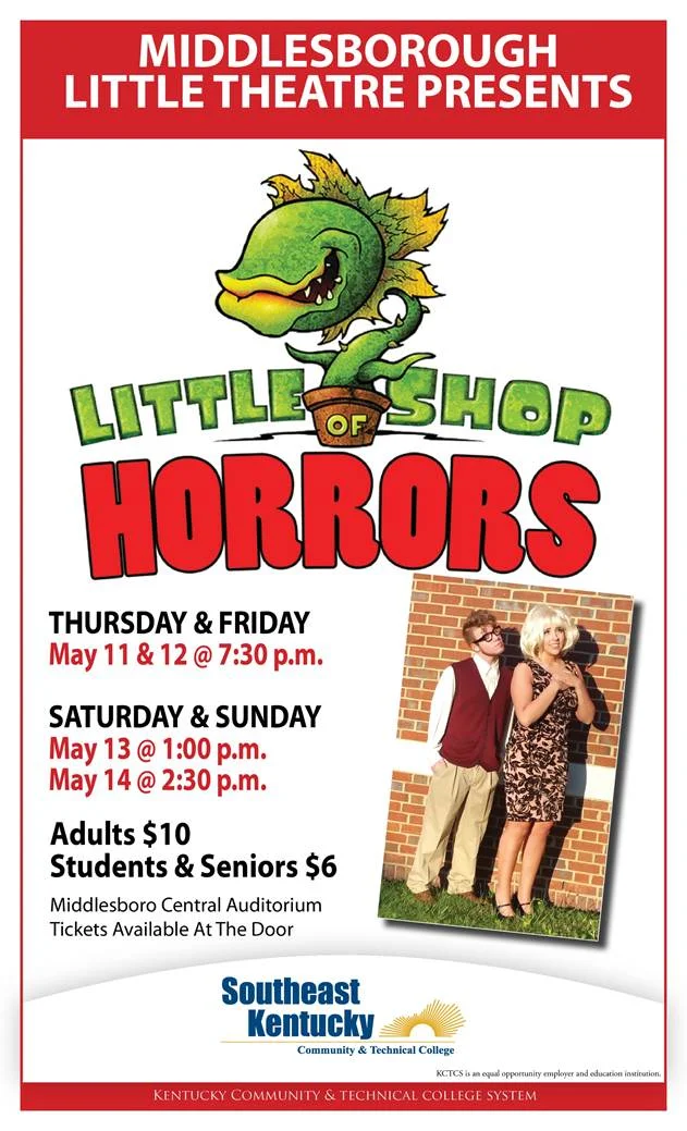 Middlesborough Little Theatre Presents - Little Shop of Horrors Thursday, May 11, 2017 8:30 PM Sunday, May 14, 2017 3:30 PM Google Calendar ICS