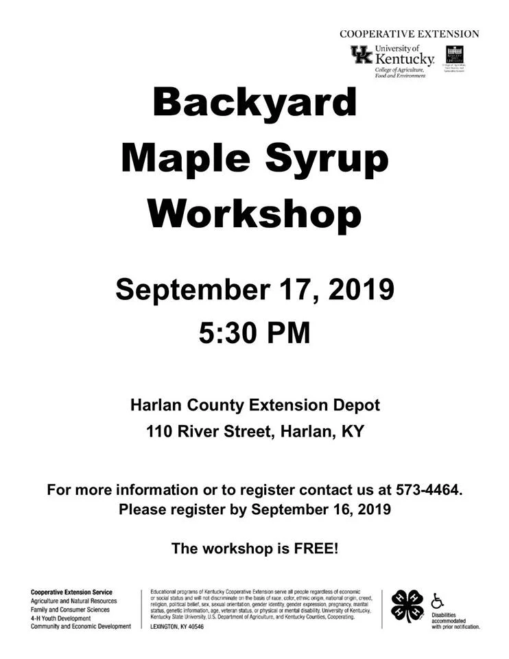 Backyard Maple Syrup Workshop - HARLAN Tuesday, September 17, 2019 5:03 PM 6:03 PM Google Calendar ICS