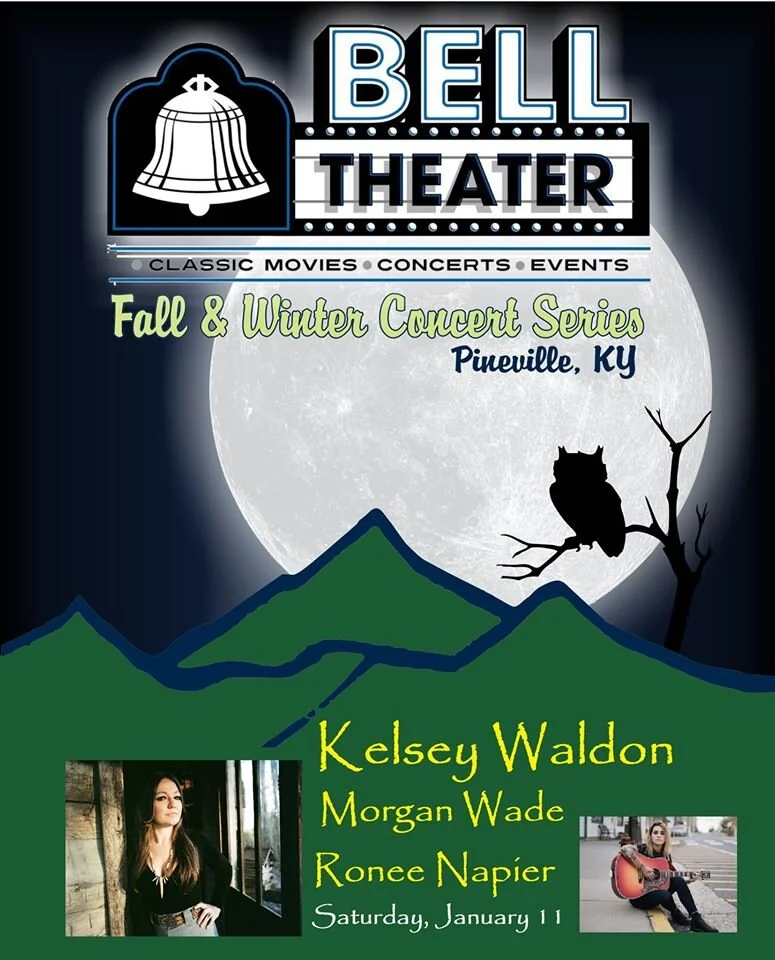 Fall & Winter Concert Series - BELL COUNTY Saturday, January 11, 2020 7:00 AM 10:00 AM Google Calendar ICS Mark your calendars for January 11th for a special night of Belle's at the Bell! Featuring Kentucky country music star and Oh Boy! Records recording artist Kelsey Waldon, with very special guest Morgan Wade as well as local talent Ronee Napier!
