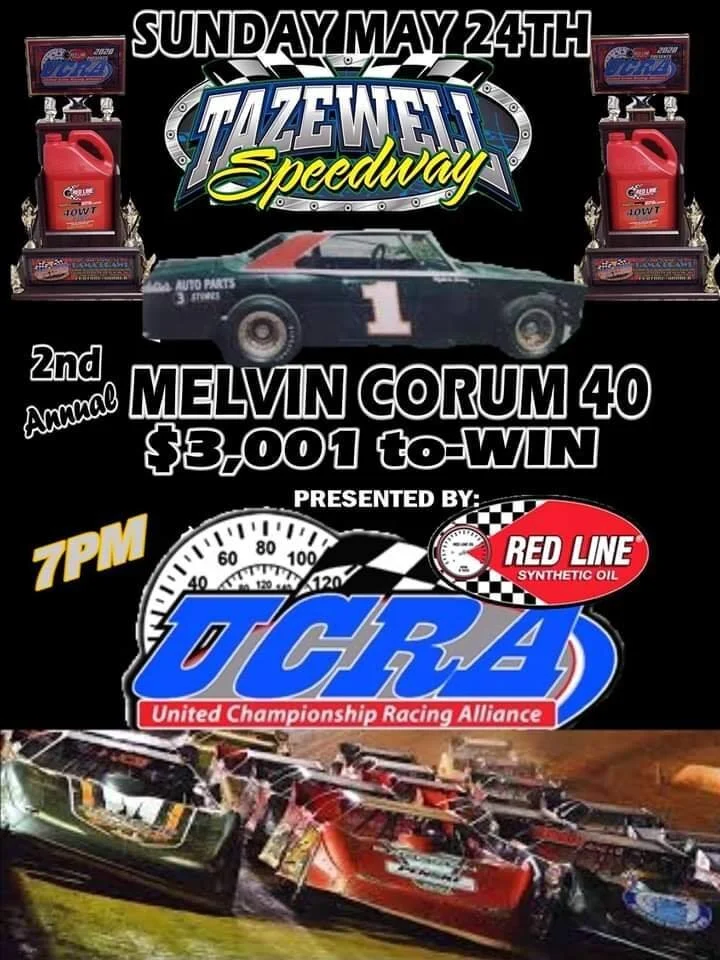 2nd Annual Melvin Corum 40, Tazewell Speedway - CLAIBORNE COUNTY Sunday, May 24, 2020 7:00 PM 11:30 PM Google Calendar ICS