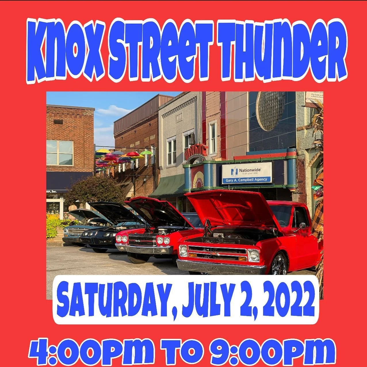 f you are a car enthusiast, you will want to be Downtown Barbourville on July 2, 2022 for Knox Street Thunder from 4:00pm to 9:00pm. The cars will be on display around the Court Square.