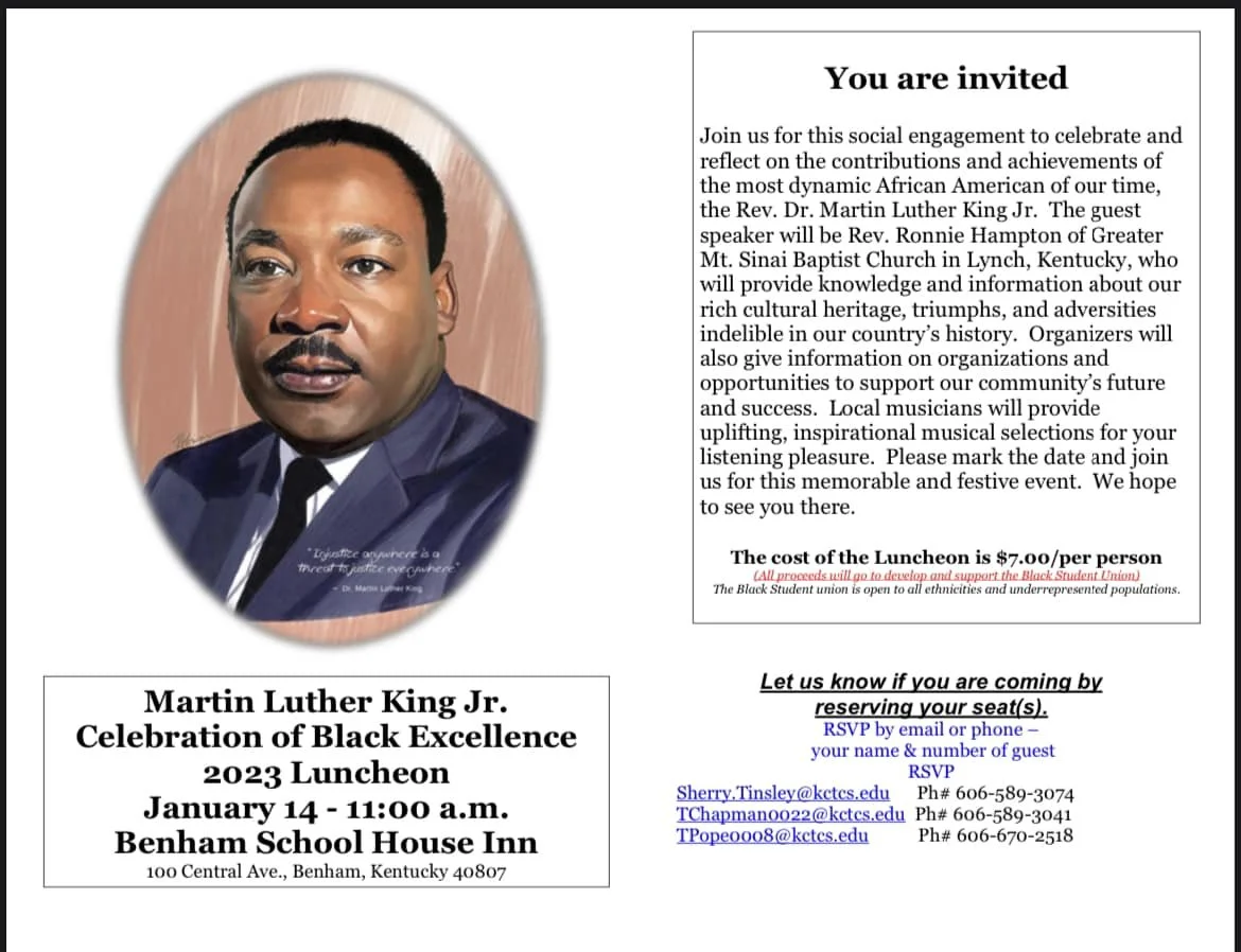 Celebration of Black Excellence Luncheon - HARLAN COUNTY Saturday, January 14, 2023 11:00 AM 2:00 PM Cumberland Gap Region Tourism Association 613 Main St NEW TAZEWELL United States (map) Google Calendar ICS