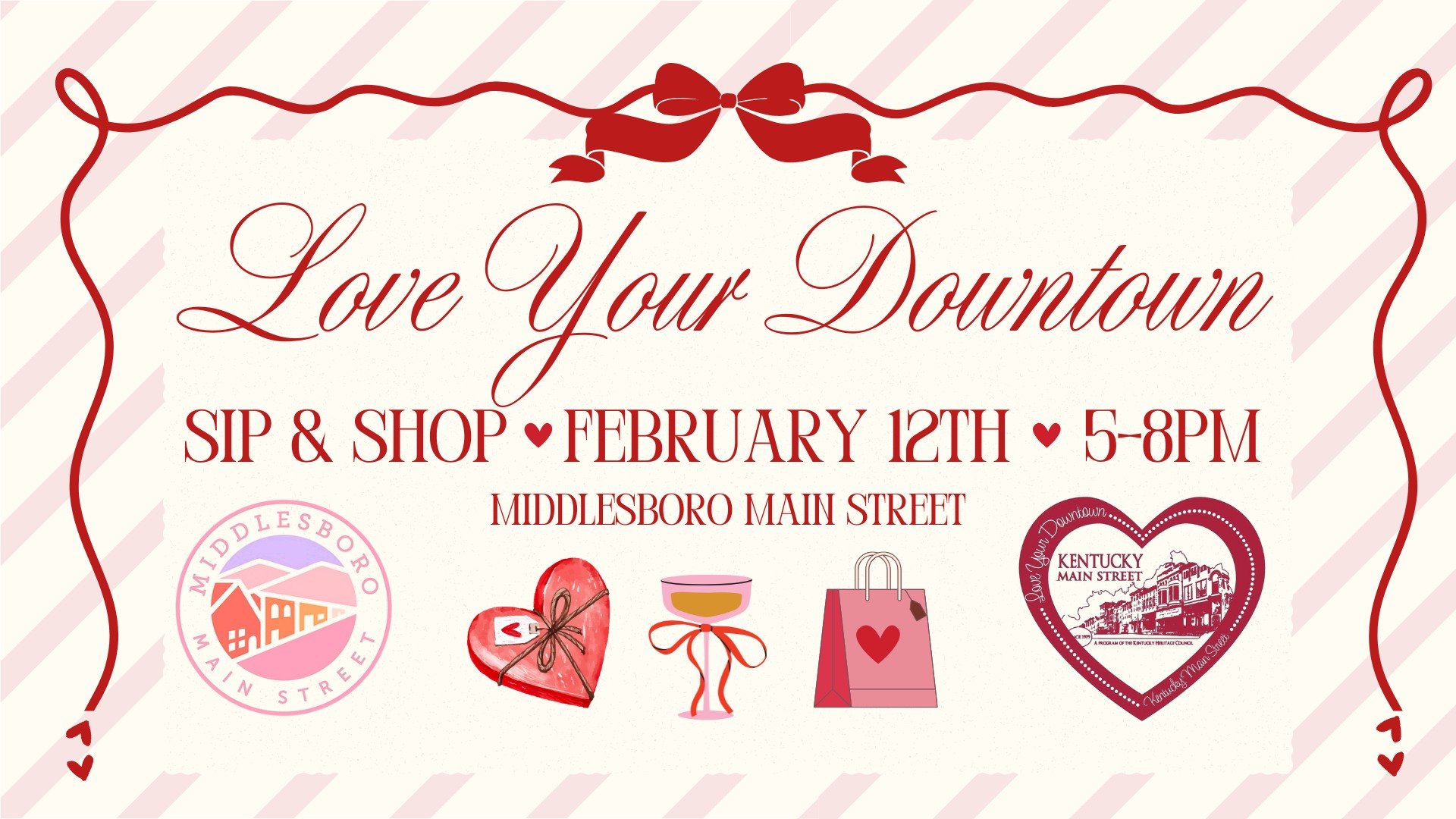 Celebrate love and local treasures at our "Love Your Downtown" Sip & Shop! Join us for a Valentine's-themed evening of unique shopping, delightful drinks, and community spirit. Find one-of-a-kind gifts for your special someone...or treat yourself!