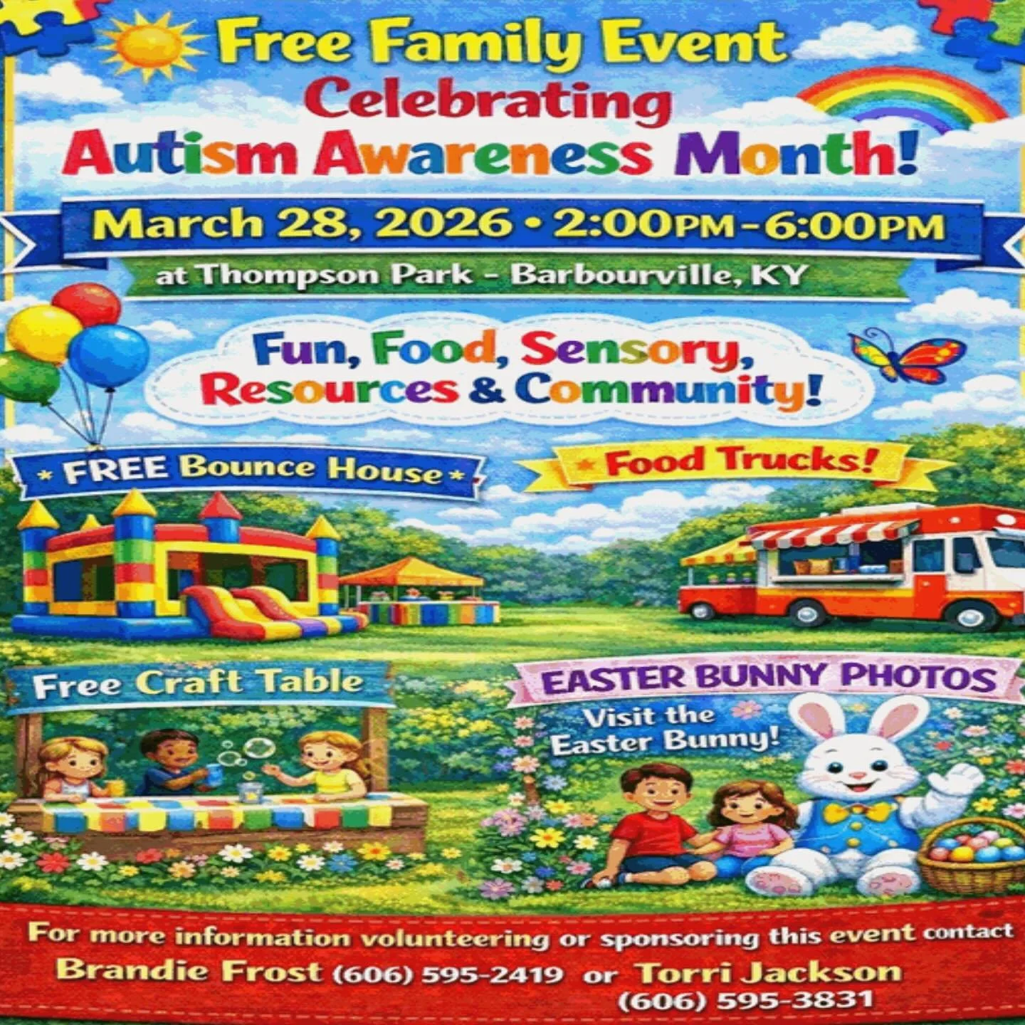 Celebrating Autism Awareness Event - KNOX COUNTY Saturday, March 28, 2026 2:00 PM 6:00 PM Thompson Park Barbourville, KY United States (map) Google Calendar ICS