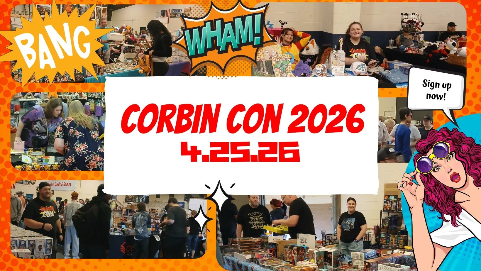 Corbin Con returns in 2026 with our first show being April 25th from 9am to 5pm at the Corbin Civic Center on Gordon Hill!